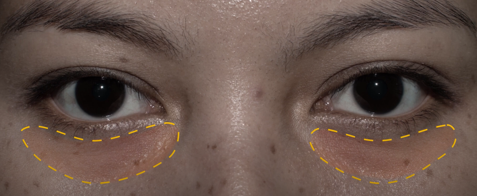 The area we’re referring to is right below the lower lids, where the lower lid meets the cheek junction.